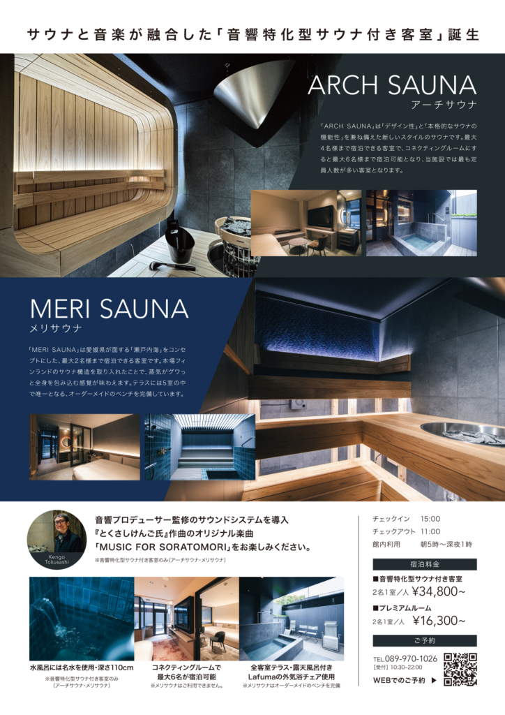 さらには、サウナ音楽家とくさしけんご氏の音楽を音響プロデューサー監修の特別な空間で体験できます。