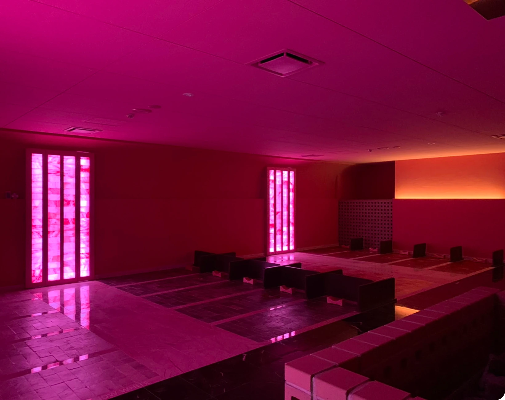 ヒマラヤの天然岩塩を使用したヒーリングチムジルバン“チャクラ洞“」では5色各々のゾーンのパワーをご自身の気分や状態に合わせて選んでいただけます。神秘的なパワーストーンの力と岩盤浴のホルミシスの相乗効果でマイナスイオンと遠赤外線センサーが大量に体の深部まで作用します。