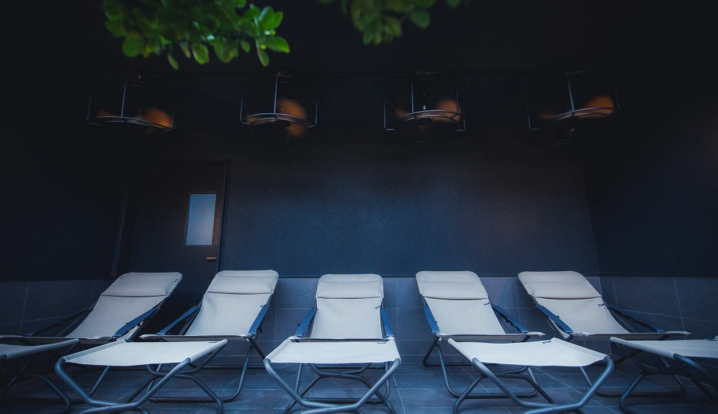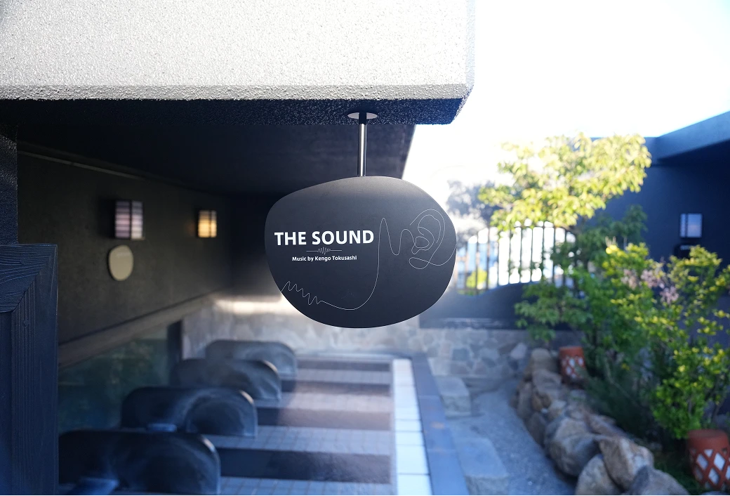 寝転び湯と整いスペースを総称しTHE SOUNDとしてリニューアル。とくさしけんご氏とWHITELIGHTが共同開発した音響体験をサウナ後の余韻とともに味わえる特別空間です。LUMO SAUNAと同じ世界観の音楽が静かに深く身に溶け込んでいきます。