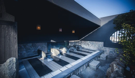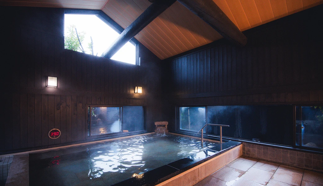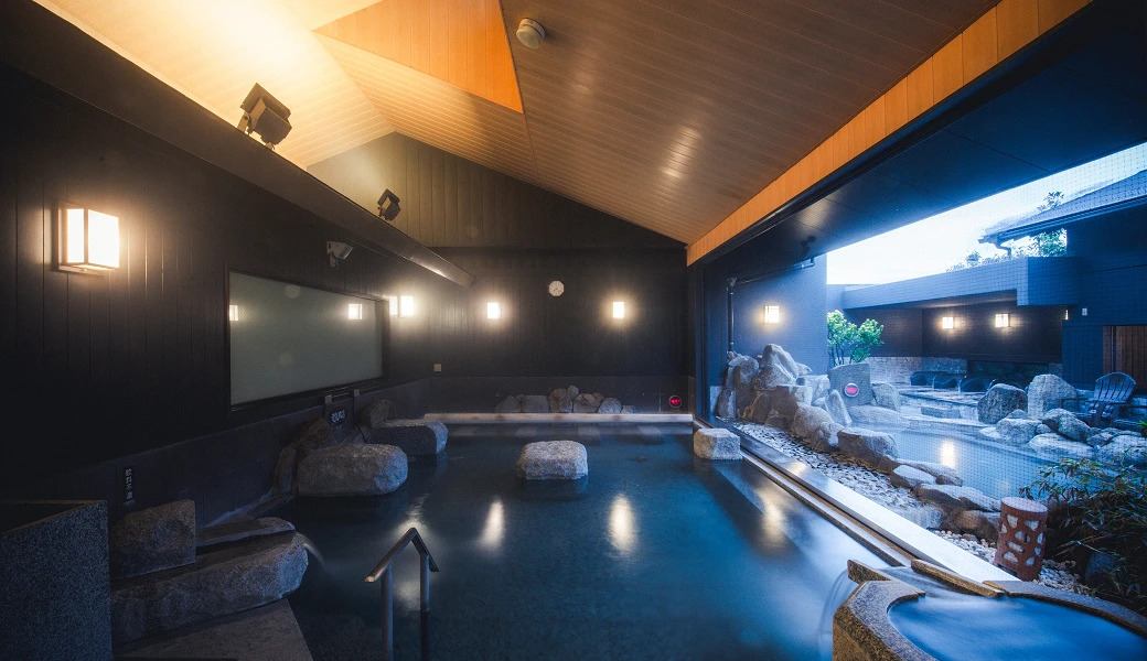 主浴の一角に配される電気風呂。微細な電気刺激が身体にやさしく働きかけ、凝り固まった筋肉の緊張を緩めます。心地よい刺激と温浴効果が組み合わさった、リフレッシュに最適な湯処です。