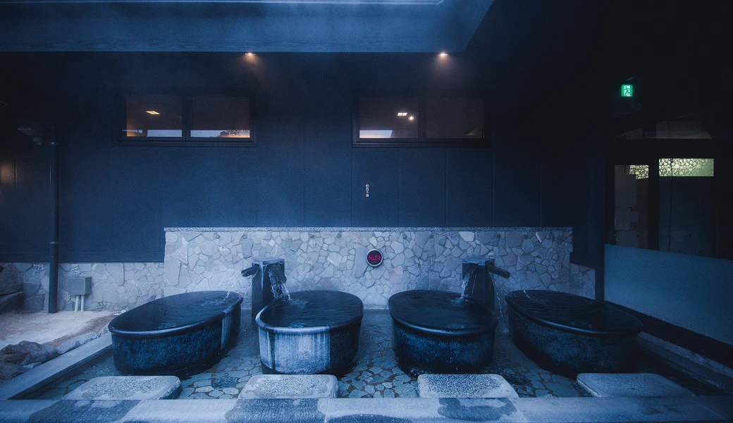 一人だけの静かな空間を楽しめる、贅沢な個湯。壺に身体をゆだねると、湯音まで心地よく響き、深い瞑想のような癒しが訪れます。自分だけの“プライベート温泉”をご堪能ください。