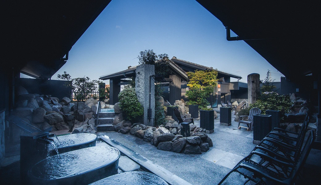 “美肌の湯”として親しまれてきた東道後温泉。一般的にpH7.5以上のアルカリ性温泉が「美肌の湯」とされる中、当施設の泉質はpH9.2と、より高い美肌効果が期待できる上質な湯です。館内には岩盤浴を備え、男性サウナ室は2025年にLUMO SAUNAとしてリニューアル。音楽×香り×デザインの三方向から五感を満たす特別なサウナ空間でお客様をお迎えいたします。