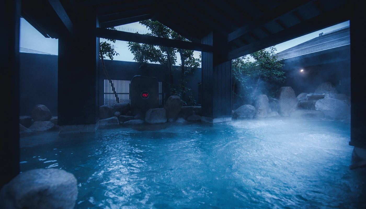 pH9.2のとろみが特徴の「アルカリ性単純温泉」は、肌にやさしく、美肌効果が高いといわれています。東道後の湯に身をゆだねて、しっとりすべすべの肌へ。また、完全プライベートの貸切露天風呂も提供しています。