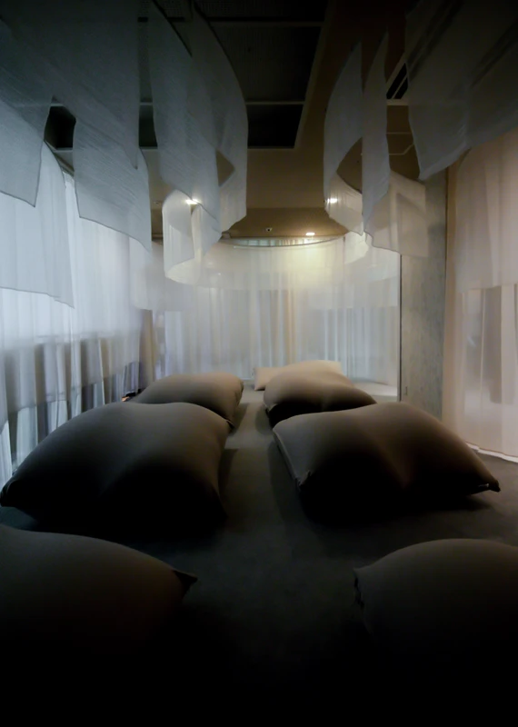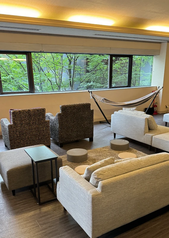 湯上がり後は、思い思いの休憩スペースでリラックスタイム。女性専用ルーム「KU」は、中学生以上の女性なら無料でご利用いただけます。新刊雑誌や漫画も毎月入荷。各所に設置されたヨギボーやソファで、ゆったりとお過ごしください。