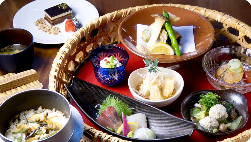 愛媛の郷土料理や、サウナ飯など多彩なメニューをご用意しています。開放感あふれるテラス席では、手ぶらで楽しめるBBQプランも人気です。