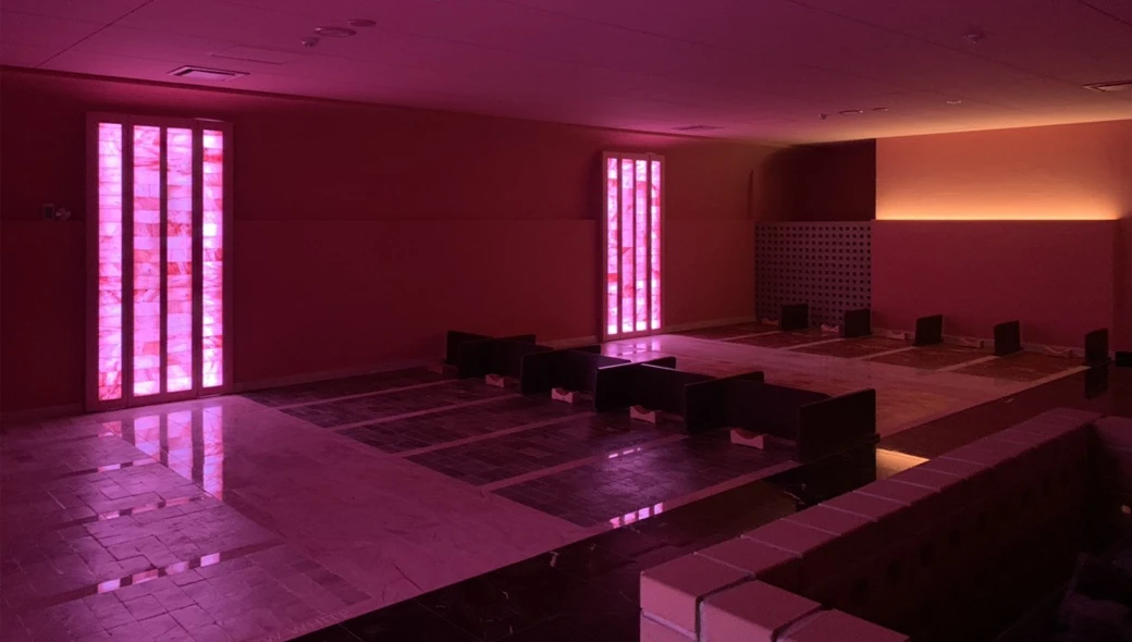 2019年新設の岩盤浴「チャクラ洞」では、5色の天然ヒマラヤ岩塩が、体内のエネルギースポット(チャクラ)に働きかけ、気の流れを活性化。ボディケアの施術前後に利用すれば、血流促進効果がさらにアップします。