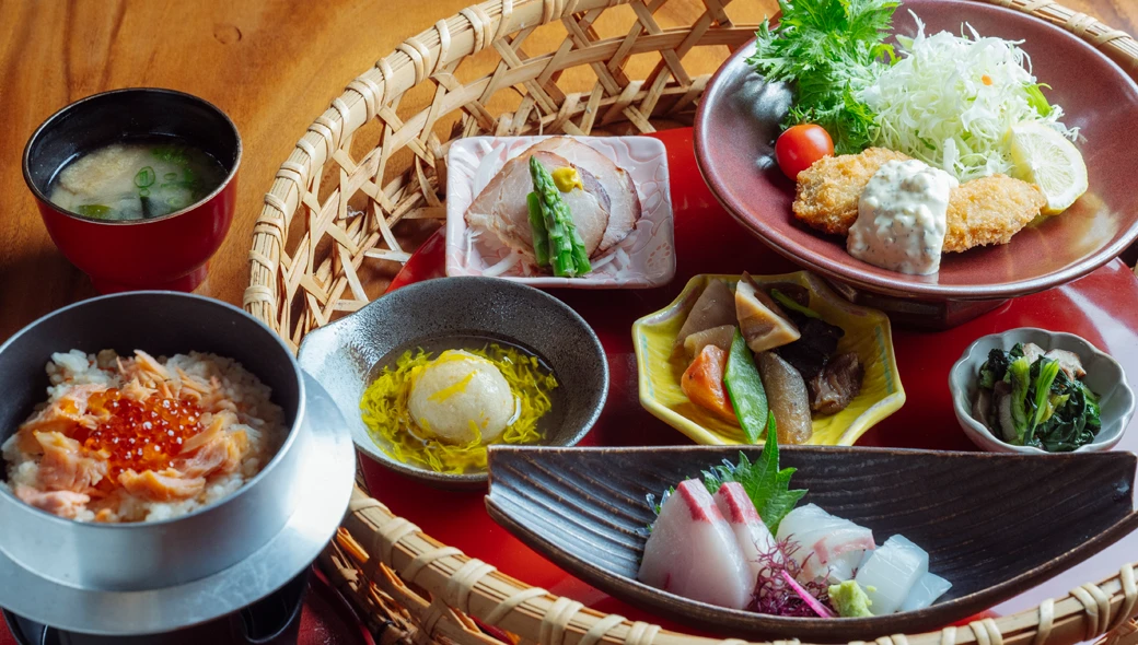 湯上がりには、体にやさしい朝食を。和洋から選べる朝食メニューをご用意しています。温泉あがりのからだに染み渡る、やさしい一膳をお楽しみください。