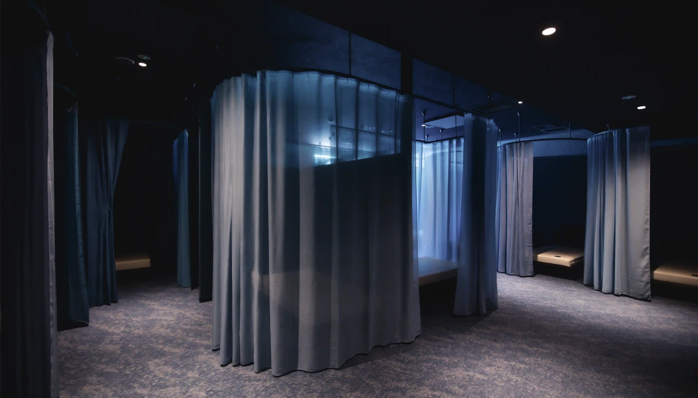 お酒を飲んだ日や、もっとゆっくり過ごしたい日は、オーバーナイトステイがおすすめ。女性専用ルーム「KU」は、静かで安心して過ごせる睡眠特化型のお部屋です。スマホ充電器やヘアカールアイロンのレンタルも可能なので、急なご利用でも安心です。