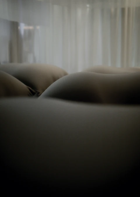 チェックアウト前のひとときは、ソファやヨギボーで静かに読書を。女性専用ルーム「KU」なら、朝までの余韻を静かに楽しめます。