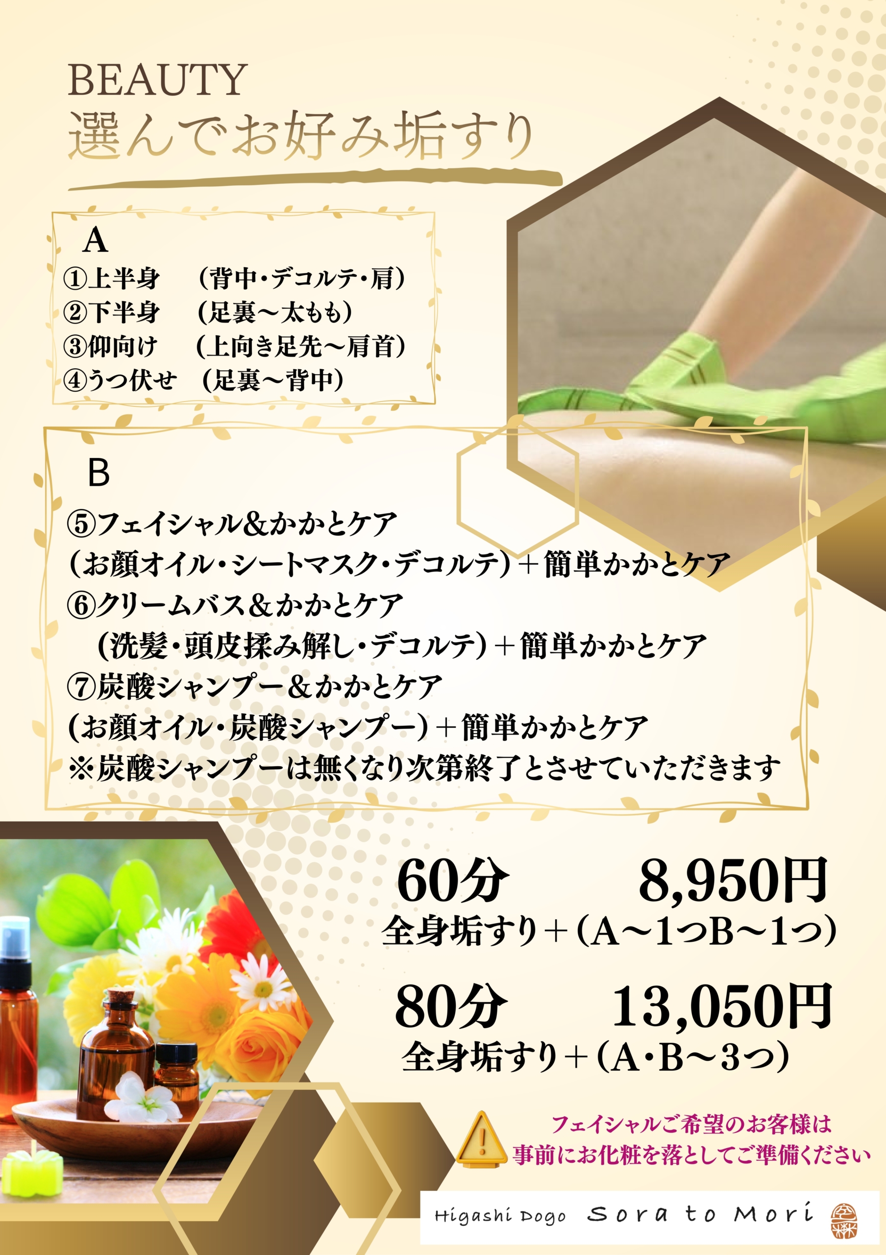 施術内容を自由に選べる1月限定の垢すりキャンペーンです。